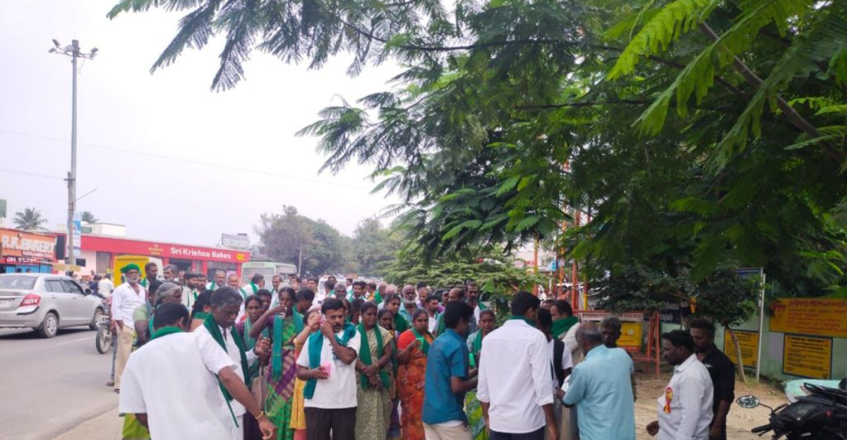 05.12.2022 கோவை அன்னூரில் விவசாய நிலங்களில் சிப்காட் தொழிற்பேட்டை அமைப்பதற்காக நிலம் கையகப்படுத்துவதை எதிர்த்து விவசாயிகள அன்னூரில் இருந்து 35 கிலோமீட்டர் தூரத்தில் உள்ள கோவை மாவட்ட ஆட்சியரிடம் ...